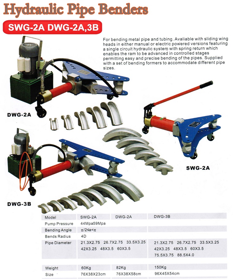 HYDRAULIC PIPE BENDERS MACHINE SWG-2A DWG-2A,3B