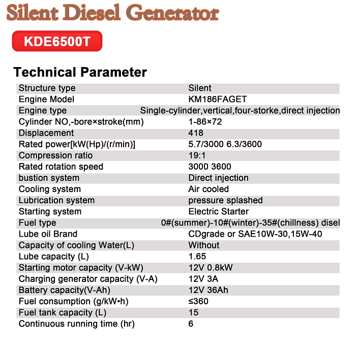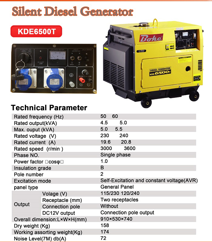 Silent Diesel Generator KDE6500T