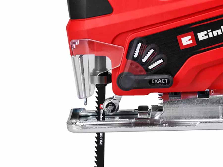 The Einhell TC-JS 18 Li cordless jigsaw is always ready to hand when it comes to the perfect cut in a wide range of materials. As a member of the Power X-Change family it offers great flexibility for jobs in the home, workshed and garage. Cordless freedom with concentrated rechargeable battery power: The rechargeable batteries from the Einhell system family can be used in all PXC devices. Thanks to really smooth operation, the cordless jigsaw delivers exact cuts. For fast cuts it has a selectable pendulum action. The universal blade holder without tools saves unnecessary hand movements, enabling the blade to be changed quickly and without the need for any tools. For optimum visibility while working there is a dust blow-off function. The integrated plastic sliding element protects particularly sensitive workpieces. The product is supplied complete with a quality saw blade for wood. This product comes with a PXC starter kit.